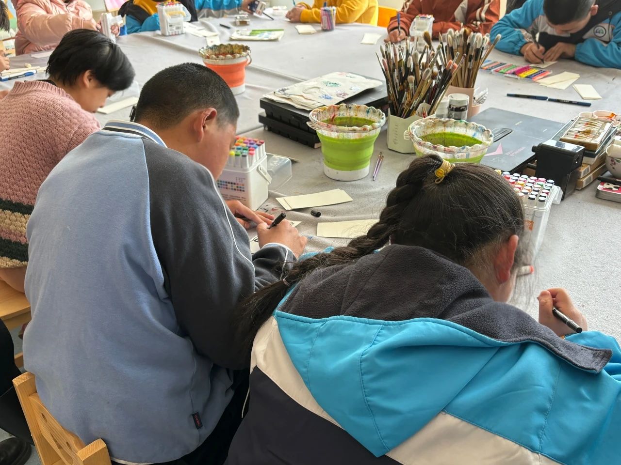 在下午的繪畫課堂上,我們與孩子們進行了親切交流,詢問他們的學習和生活情況,孩子們也用他們特有的方式,表達著對我們的感謝。有的孩子即興用畫筆繪出了心中的美好愿景,有的孩子用稚嫩的聲音說出了心中的感謝話語。這些帶有真摯情感的交流,讓現場充滿了溫馨和歡樂。