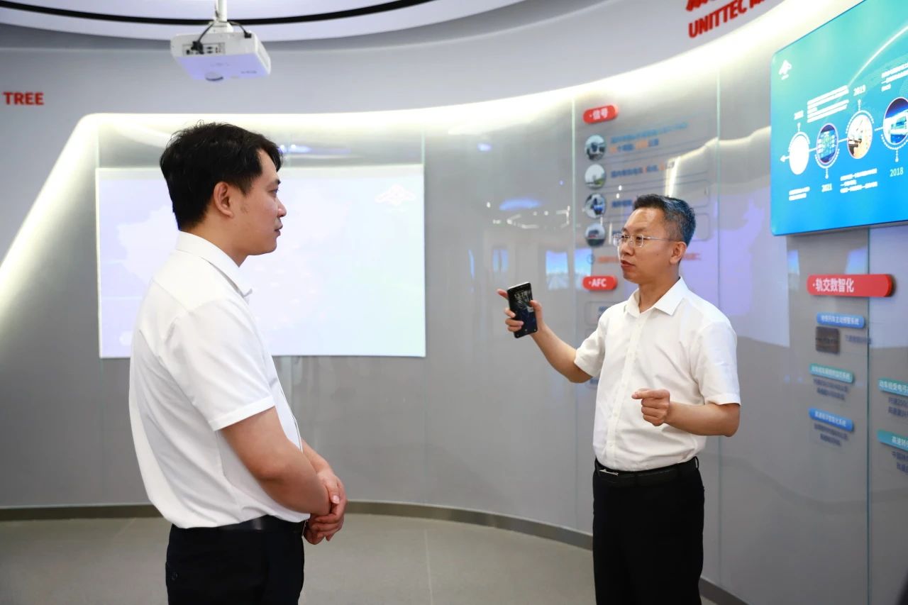 在眾合科技展示中心,陳超一行聽取了眾合科技的發(fā)展歷程,以及在智慧交通、泛半導體、產(chǎn)業(yè)數(shù)智化等領(lǐng)域的技術(shù)創(chuàng)新成果匯報,詳細了解了眾合科技在軌道數(shù)智化、低空經(jīng)濟領(lǐng)域的最新技術(shù)、產(chǎn)品及場景化應用情況。