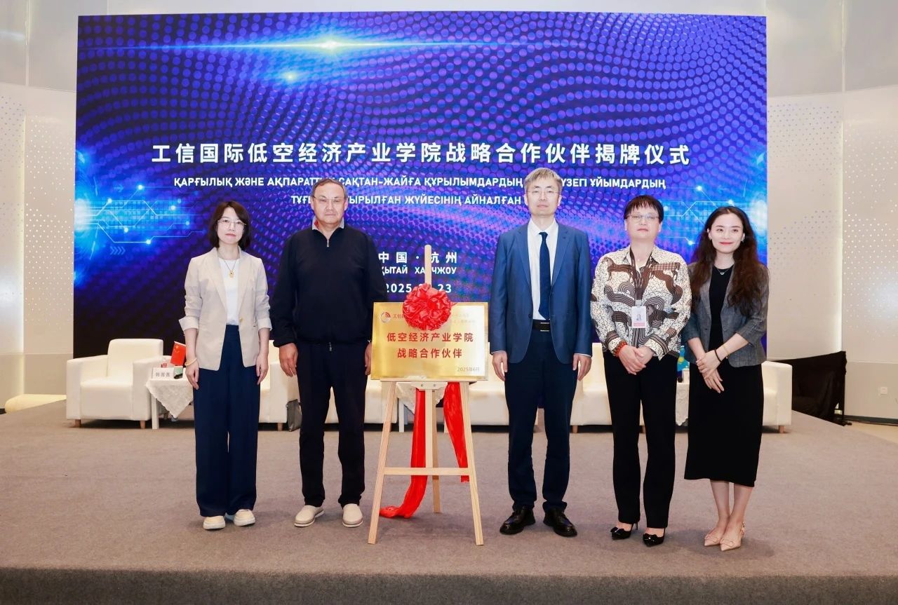 會議現場,工信部國際經濟技術合作中心專家、產業教育化專家及科技型企業代表與哈方圍繞政策導向、產業需求、教育資源整合、智慧運輸等多個維度展開深入研討。他們憑借專業視角和豐富經驗,剖析了當前國際產教融合面臨的機遇與挑戰,并結合實際案例,提出了一系列極具前瞻性和可操作性的建議。活動現場還舉辦了“工信國際低空經濟產業學院戰略合作伙伴”揭牌儀式。